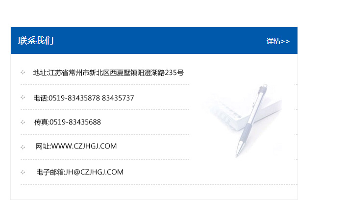 傳真:0519-83435688    郵編:213135    網址:WWW.czjhgj_com.shenzhenmingchen.com    電子郵箱:JH@czjhgj_com.shenzhenmingchen.com